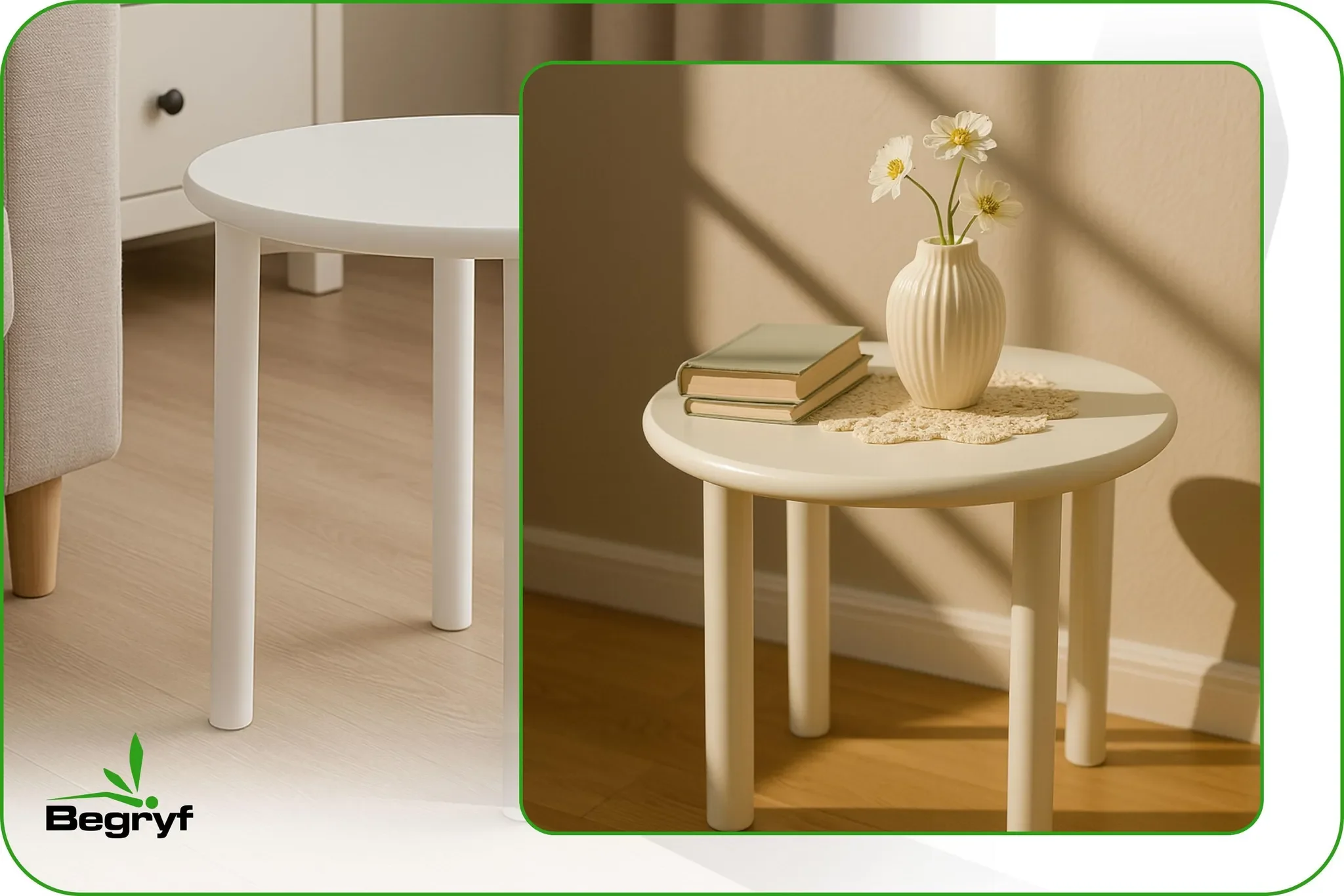 | Produkttyp | Runder Holzhocker / Beistelltisch |