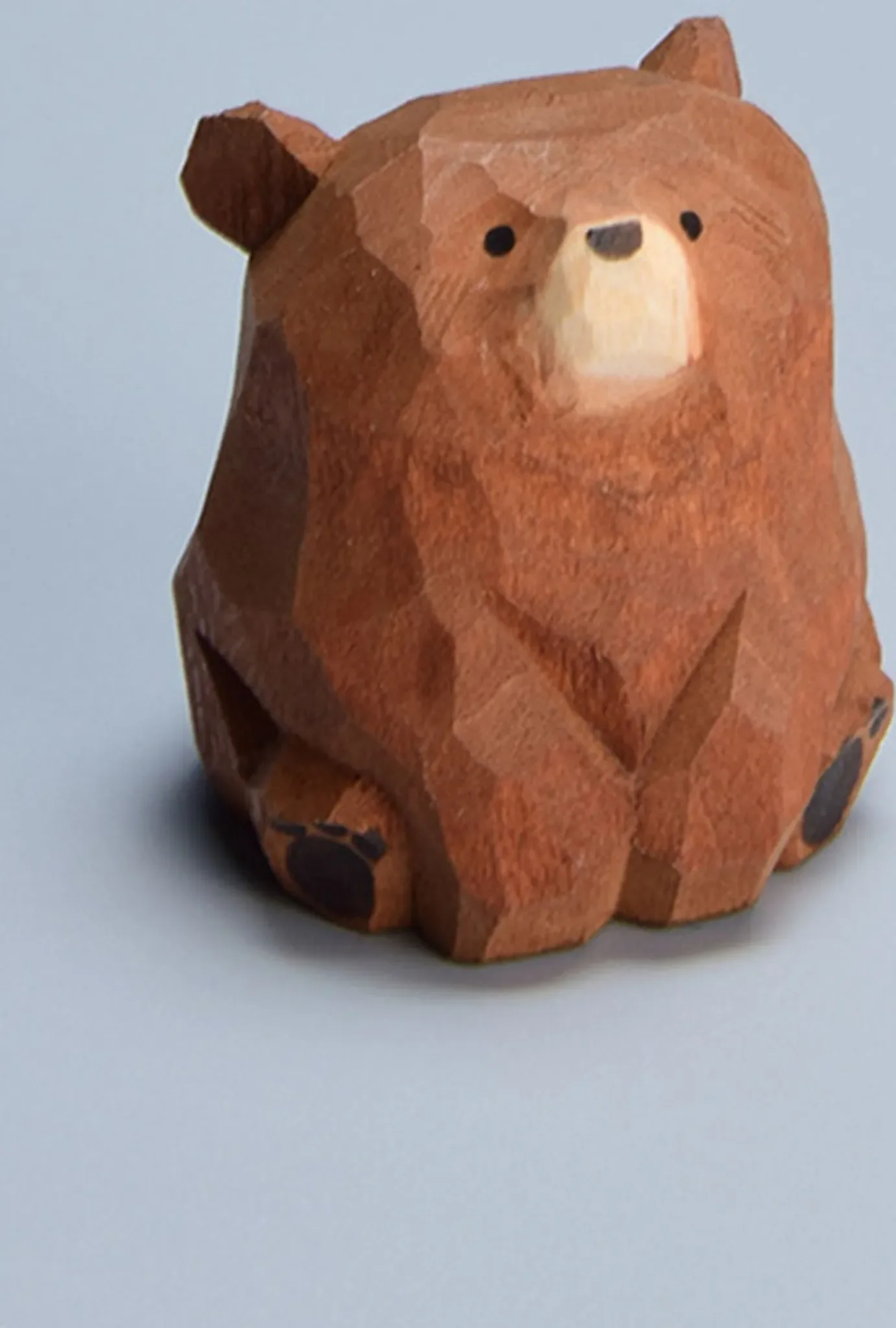 Bärenfigur aus Holz – Miniatur-Tierstatue für Kinderzimmer, Wohnzimmer oder Büro