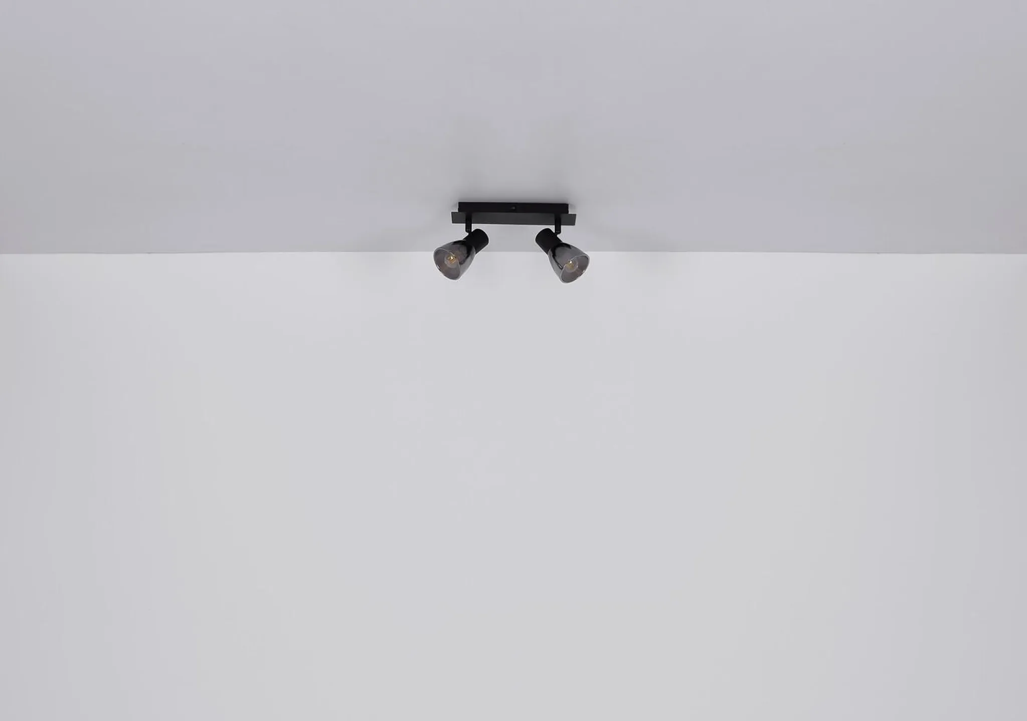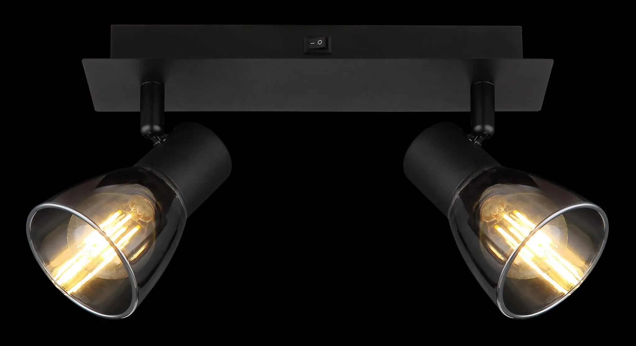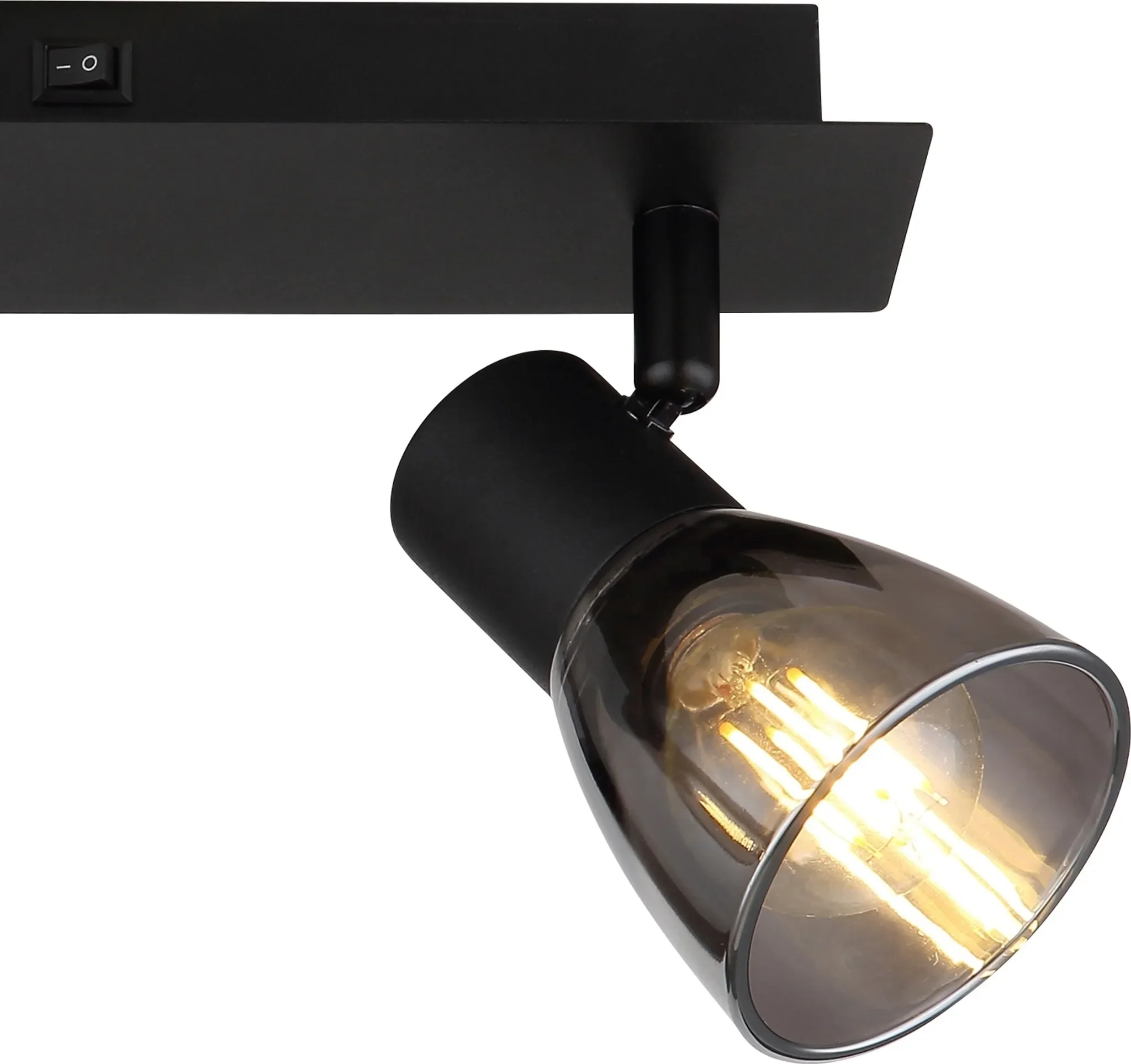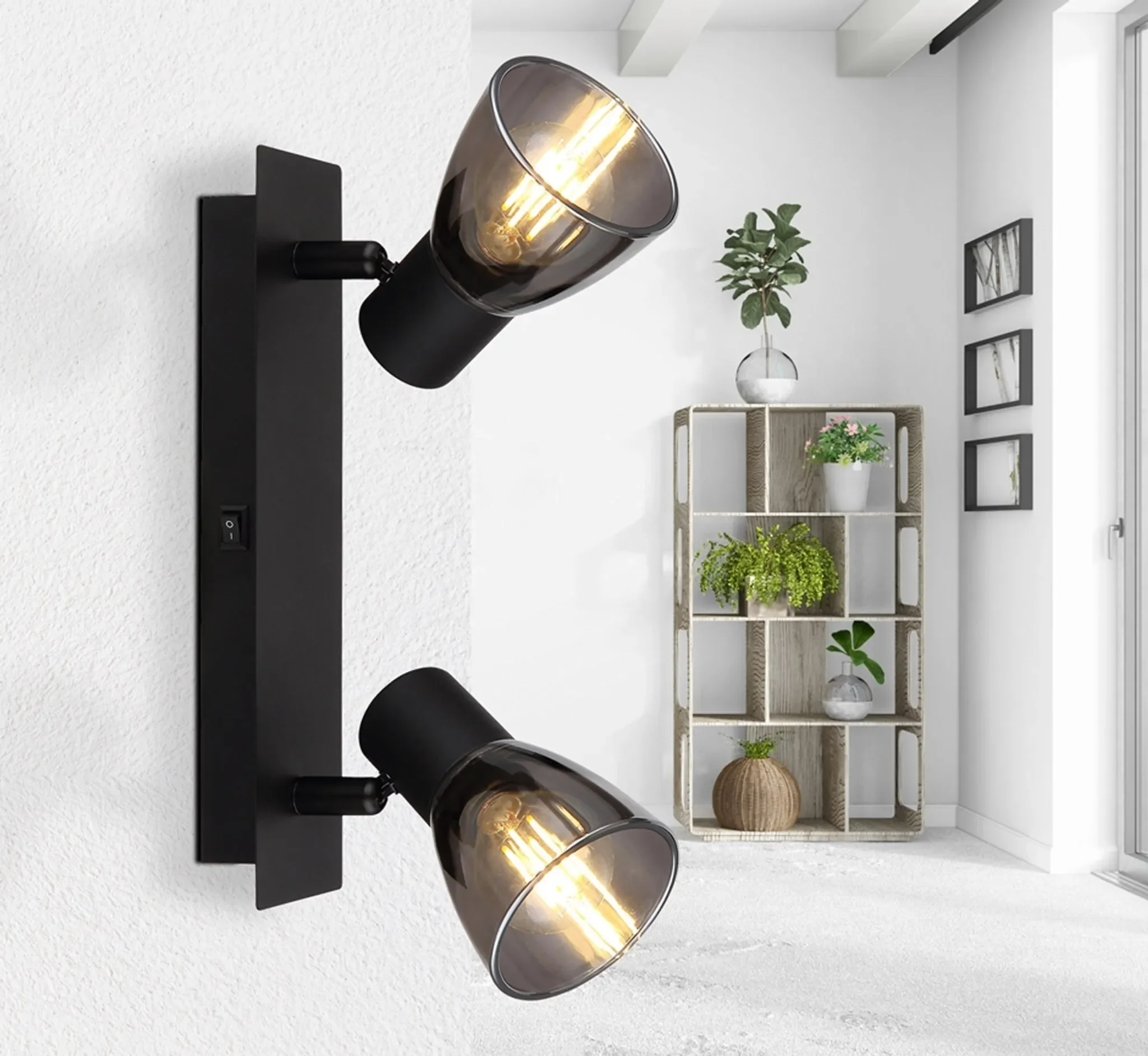 GLOBO 54307-2 CLAUDE Strahler – Metall Schwarz Matt, 2-flammig, E14, Glas Rauchfarben