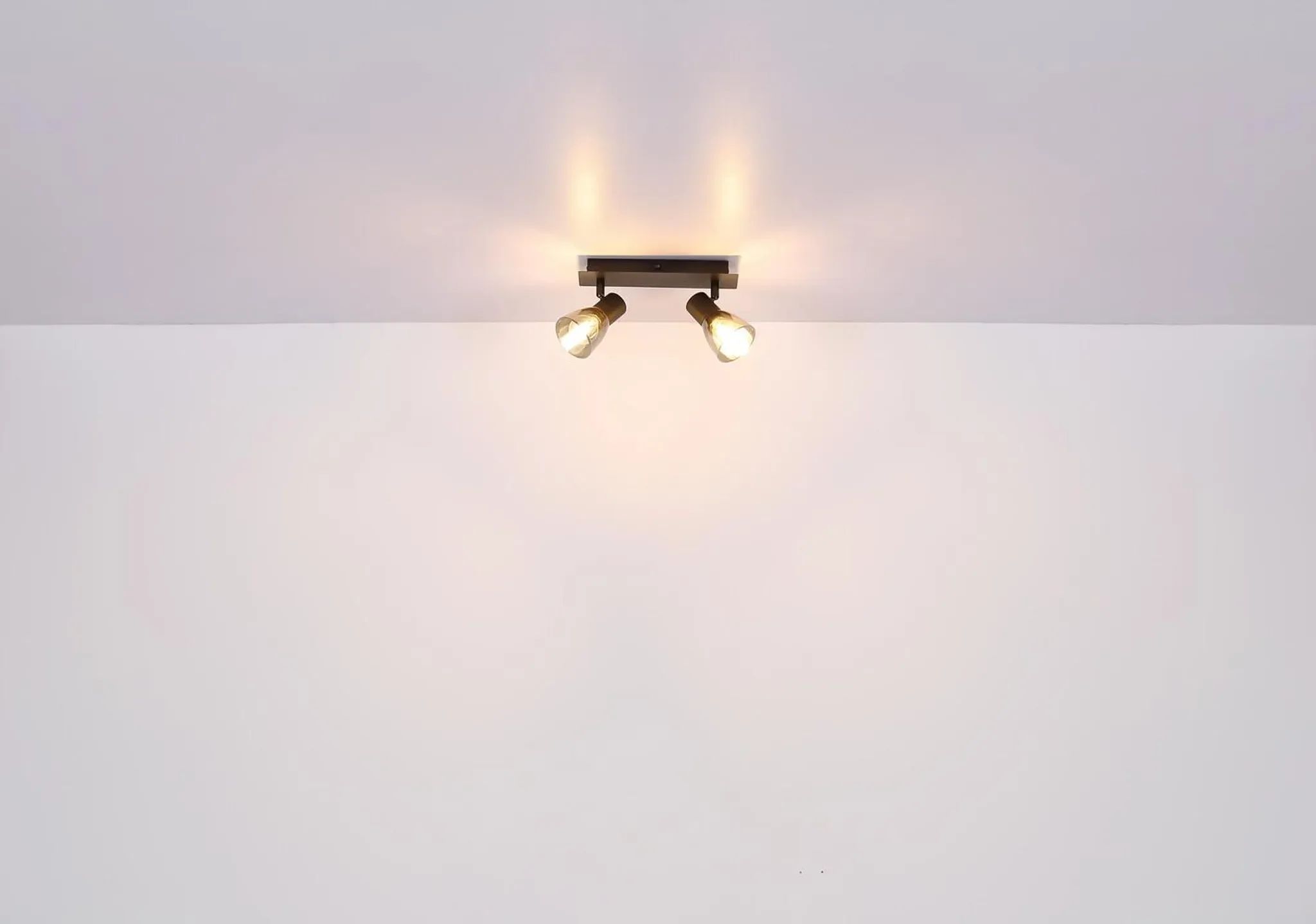 Dank der verstellbaren Lampenköpfe lässt sich das Licht individuell ausrichten, um gezielte Akzente im Raum zu setzen. Mit den zwei E14-Fassungen (je max. 40 W) haben Sie die Freiheit, selbst über Helligkeit und Lichtfarbe zu entscheiden – ideal für den Einsatz von LED-Leuchtmitteln. Ein integrierter Wippschalter ermöglicht eine einfache Bedienung direkt an der Leuchte.