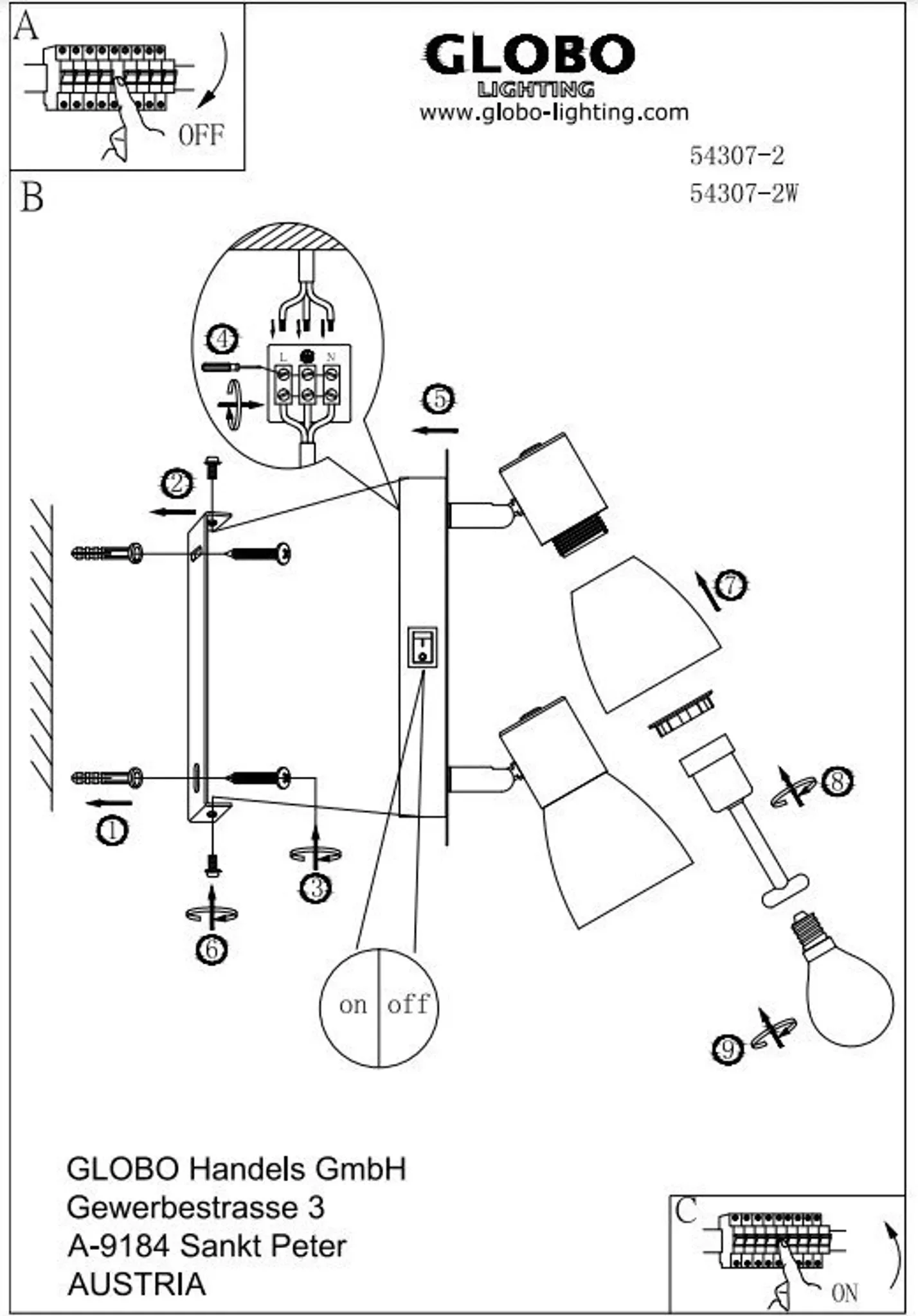 1 × GLOBO CLAUDE 2-flammiger Strahler (ohne Leuchtmittel)