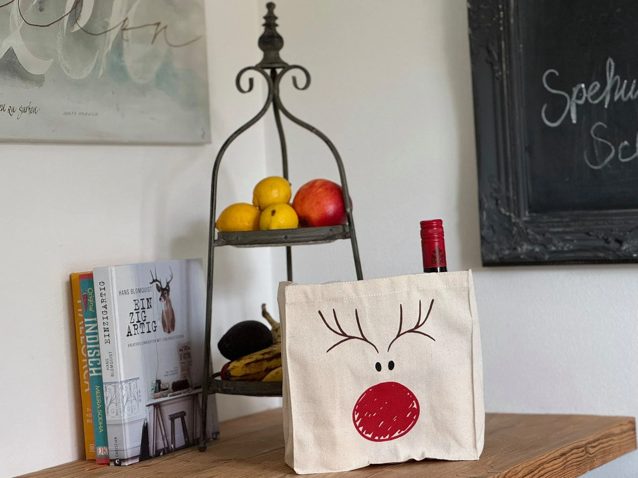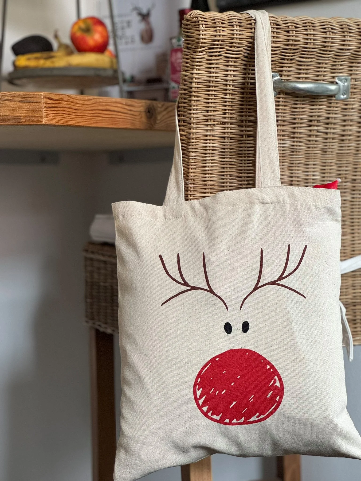 Geschenktasche „Rudolph“ – Baumwolltasche mit Rentiermotiv für Weihnachten & Nikolaus