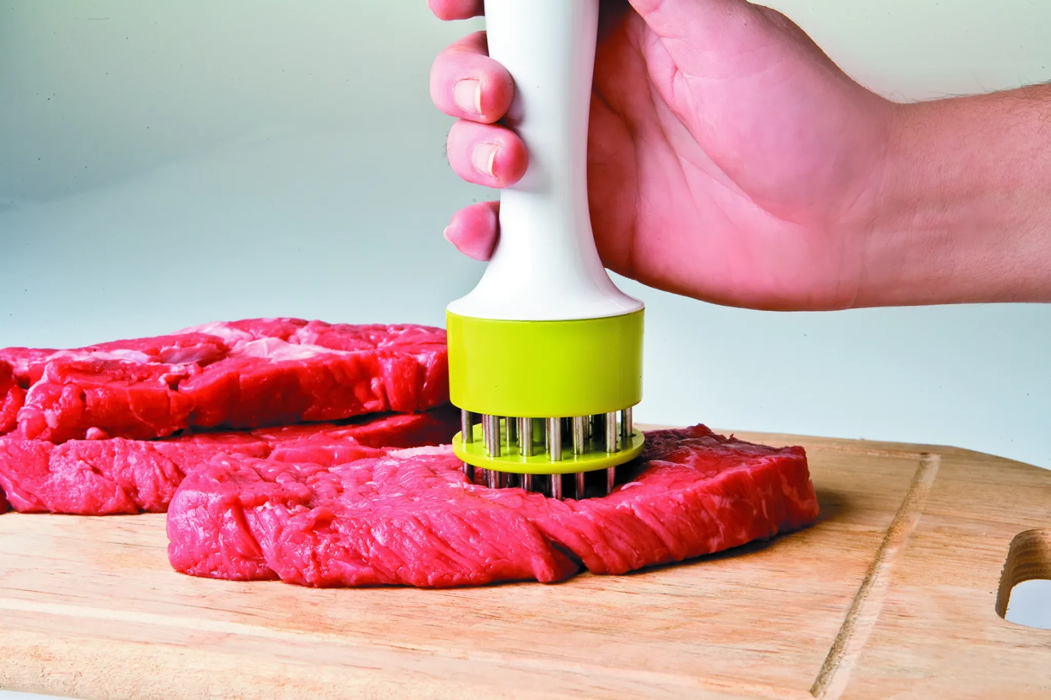 Tipp: Würzen Sie das Fleisch vor dem Zartmachen – die Gewürze dringen durch die Edelstahlspieße tief ins Fleisch ein für besonders intensives Aroma.