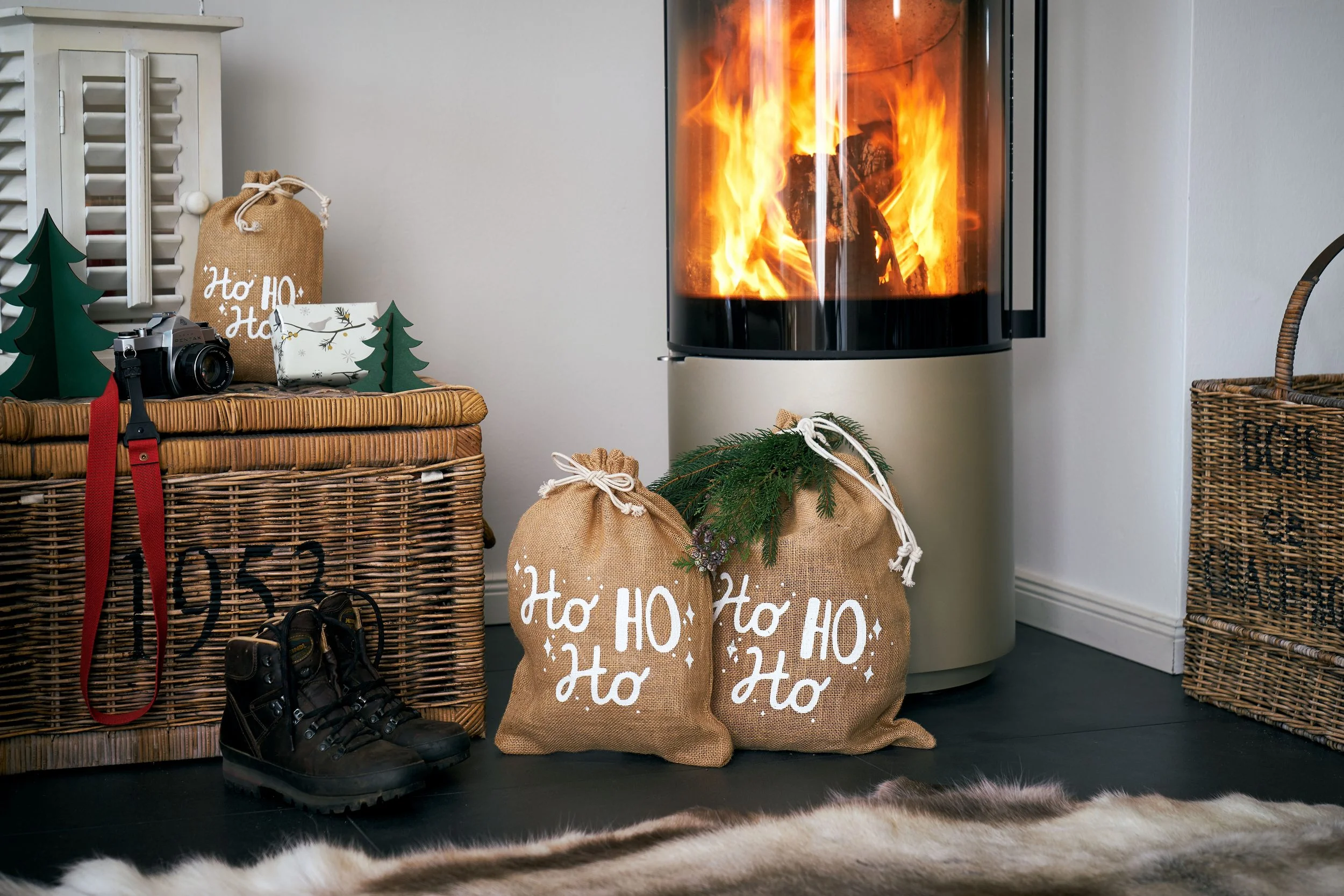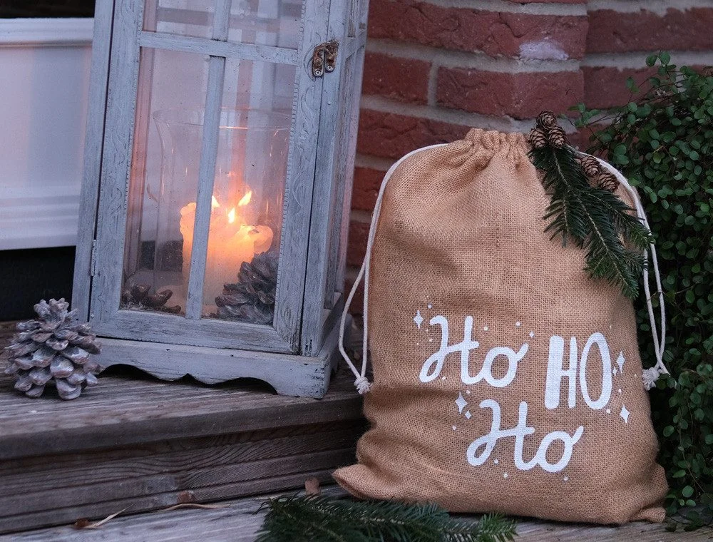 Dieses 2er-Set Jutebeutel mit dekorativem „Ho Ho Ho“-Schriftzug eignet sich ideal als festliche Geschenkverpackung zur Advents- und Weihnachtszeit. Der natürliche Look aus Jute verleiht Geschenken eine rustikale, warme Note und passt perfekt zu klassischer Weihnachtsdekoration.