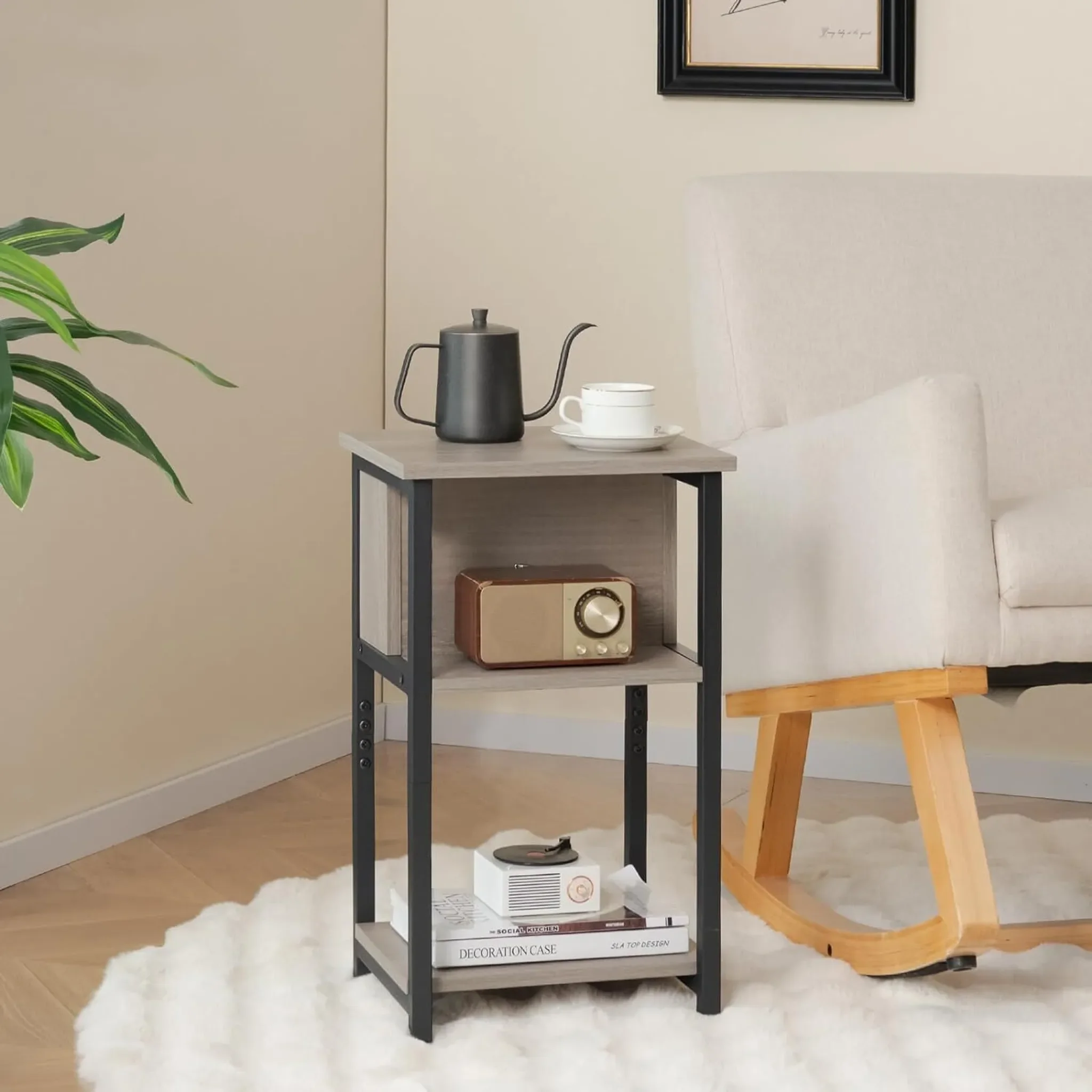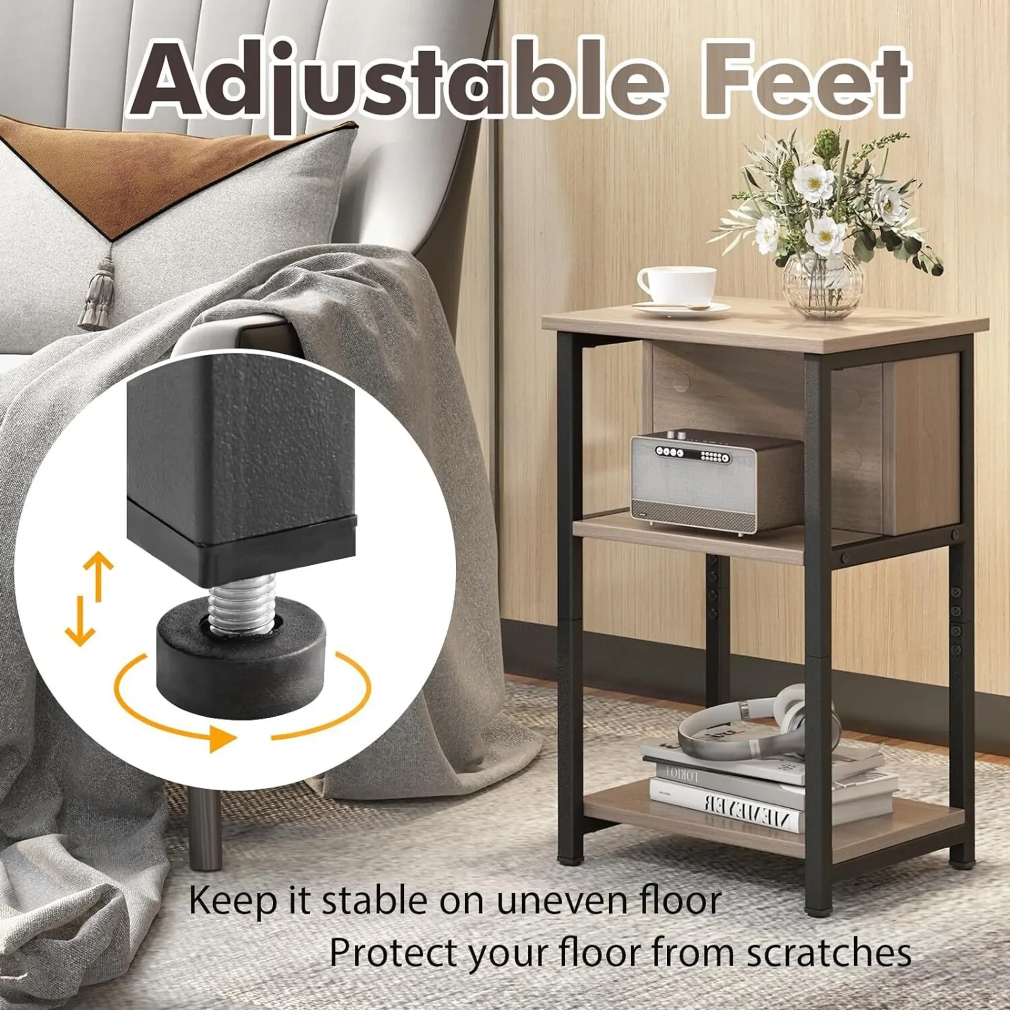 Der KOMFOTTEU 3-stufige Nachttisch ist die perfekte Kombination aus Stil, Funktionalität und Stabilität. Mit seinem platzsparenden Design fügt er sich harmonisch in jeden Wohnraum ein – sei es neben dem Bett, der Couch oder im Flur. Dank der drei Ablageflächen bietet der Beistelltisch reichlich Stauraum für Lampen, Bücher, Pflanzen oder Dekoration.