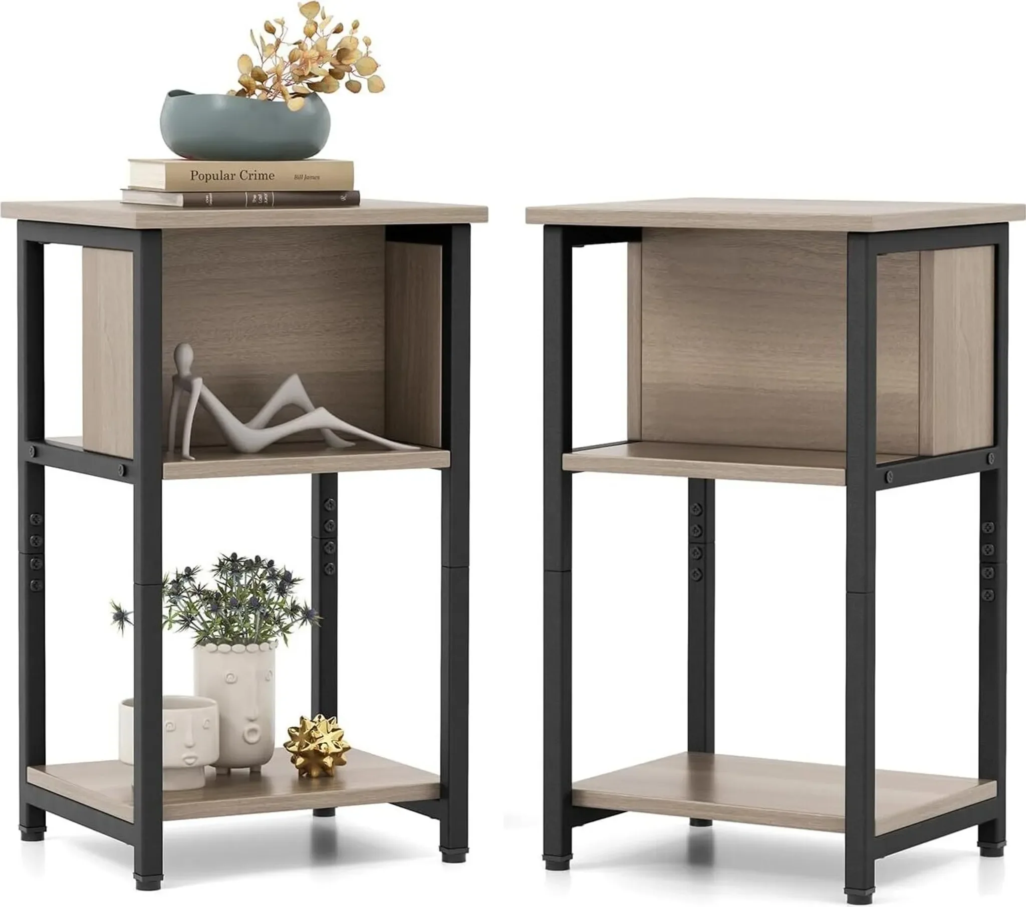 KOMFOTTEU 3-stufiger Nachttisch – Beistelltisch mit Ablage, 34 × 30 × 58,5 cm, Grau-Schwarz