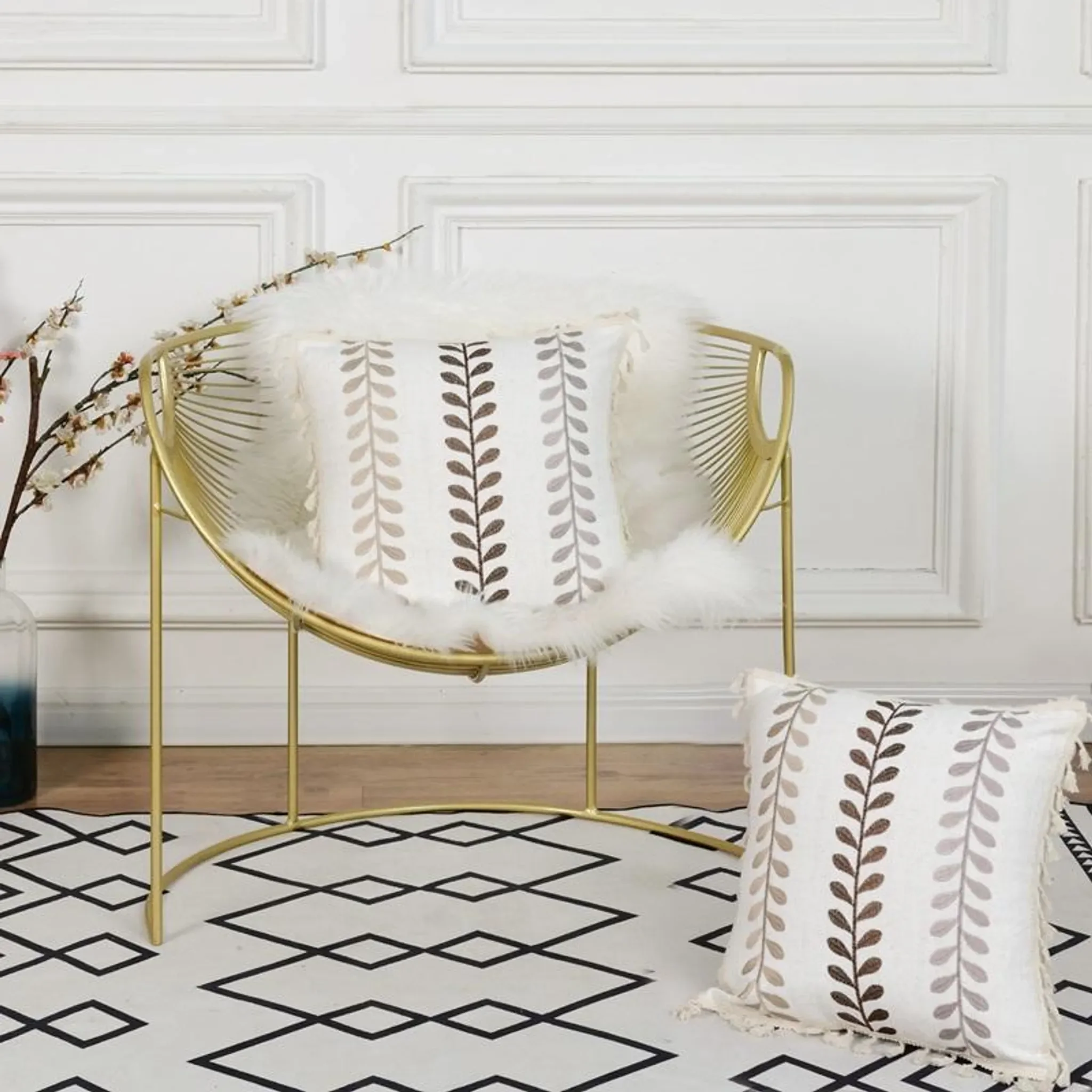 Dieser Boho-Kissenbezug mit Fransen bringt einen Hauch von Natürlichkeit und Harmonie in Ihr Zuhause. Die zarten Stickereien in beigen, botanisch inspirierten Mustern und die eleganten Fransen verleihen dem Kissen eine warme, handgefertigte Ausstrahlung – perfekt für Wohnzimmer, Schlafzimmer oder gemütliche Leseecken im modernen Boho-Stil.