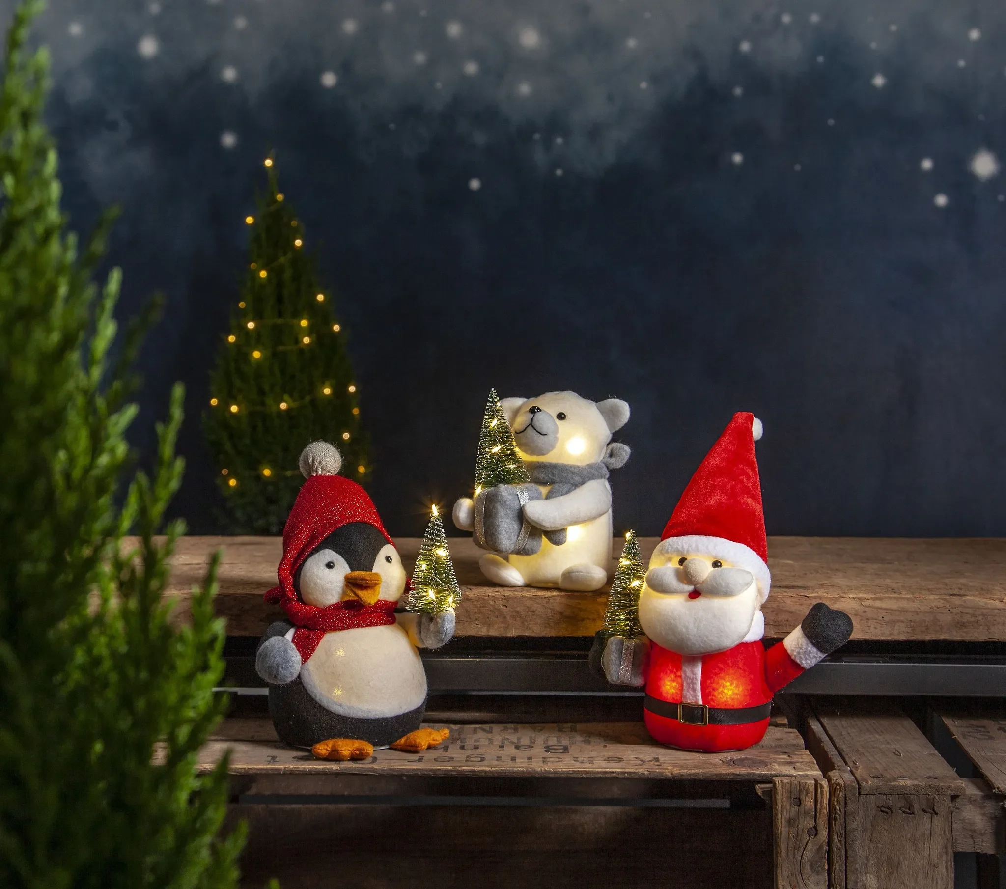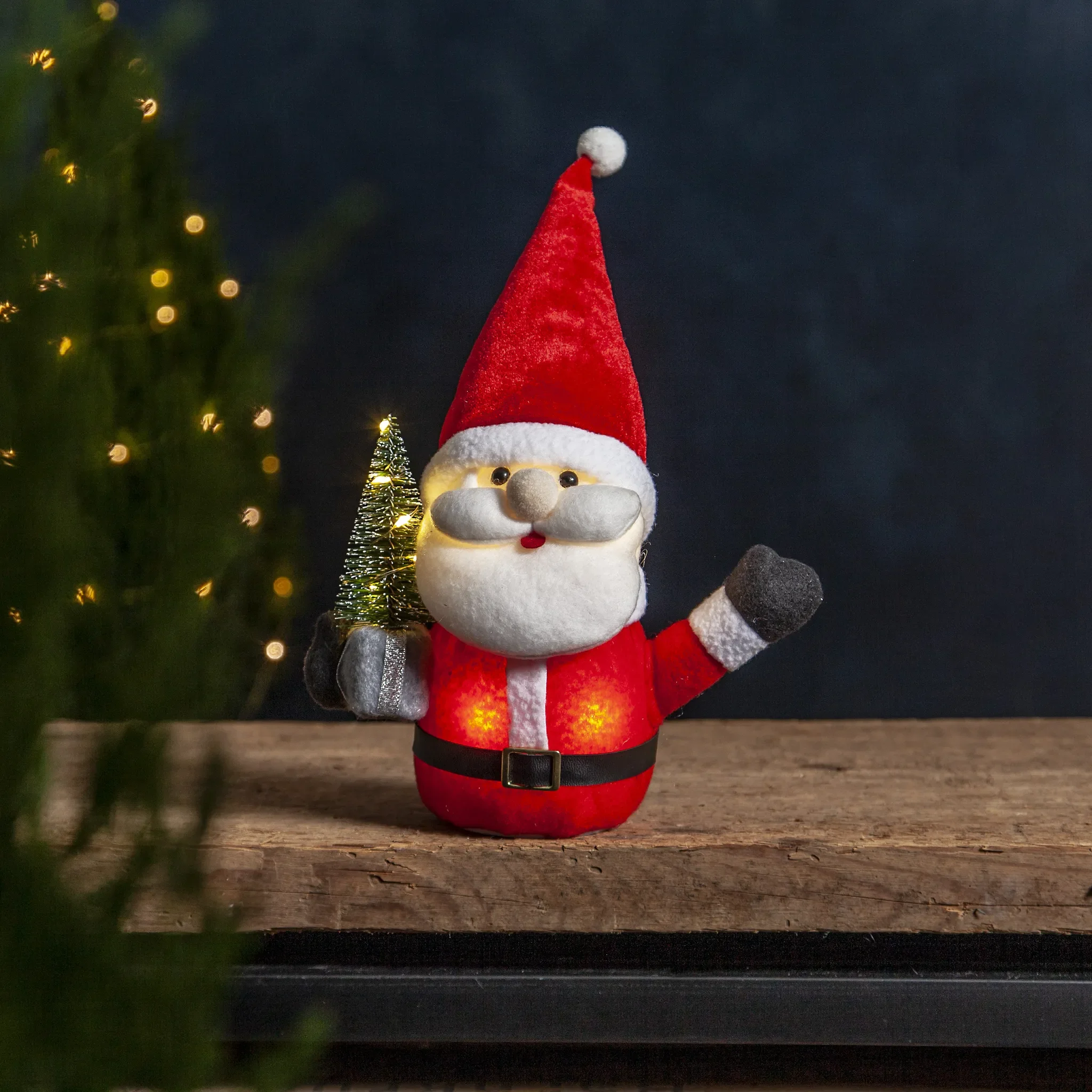 Leuchtende Weihnachtsfigur aus Kunststoff und Textil mit warmweißen LEDs für eine festliche Atmosphäre im Innenbereich