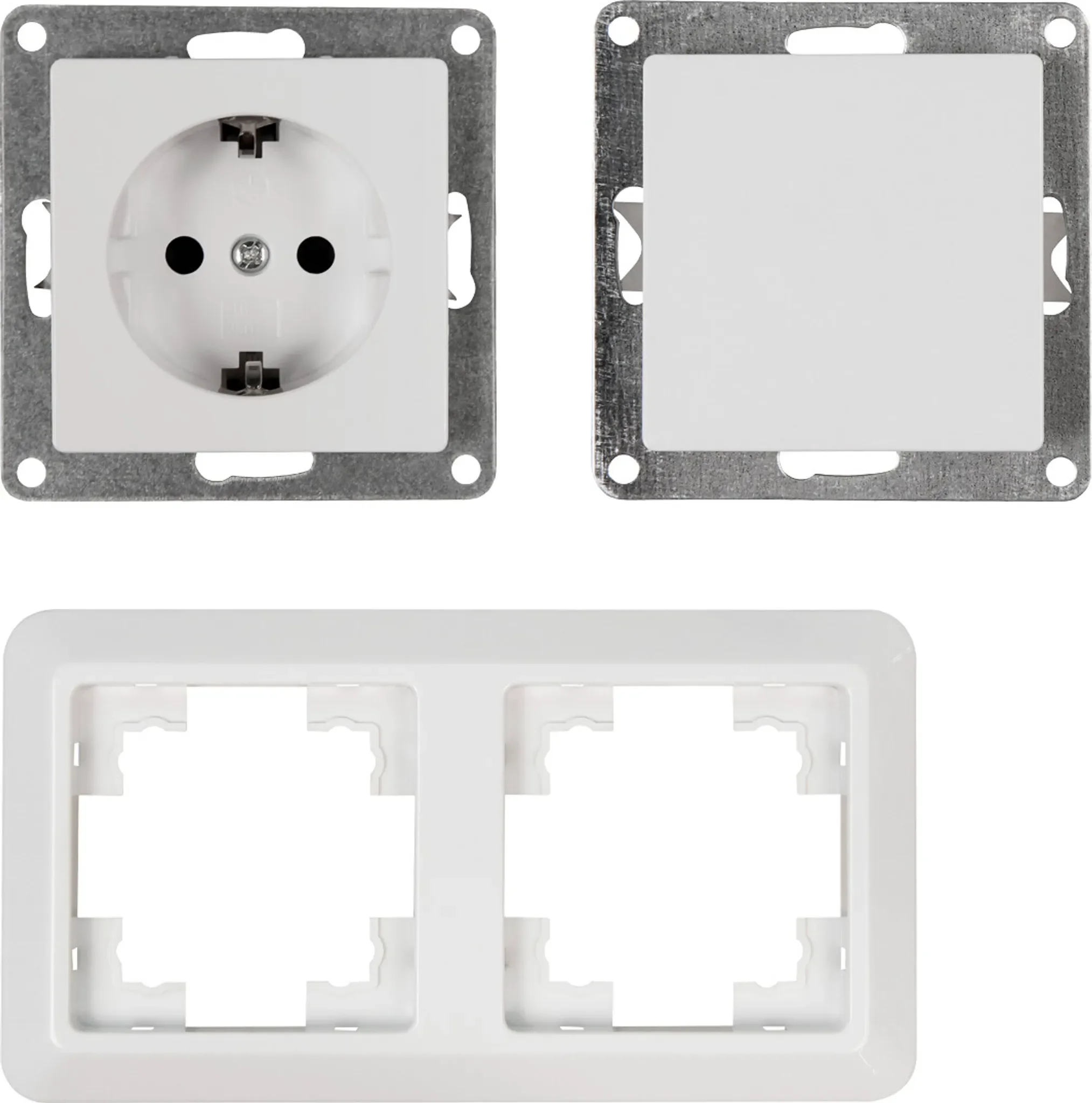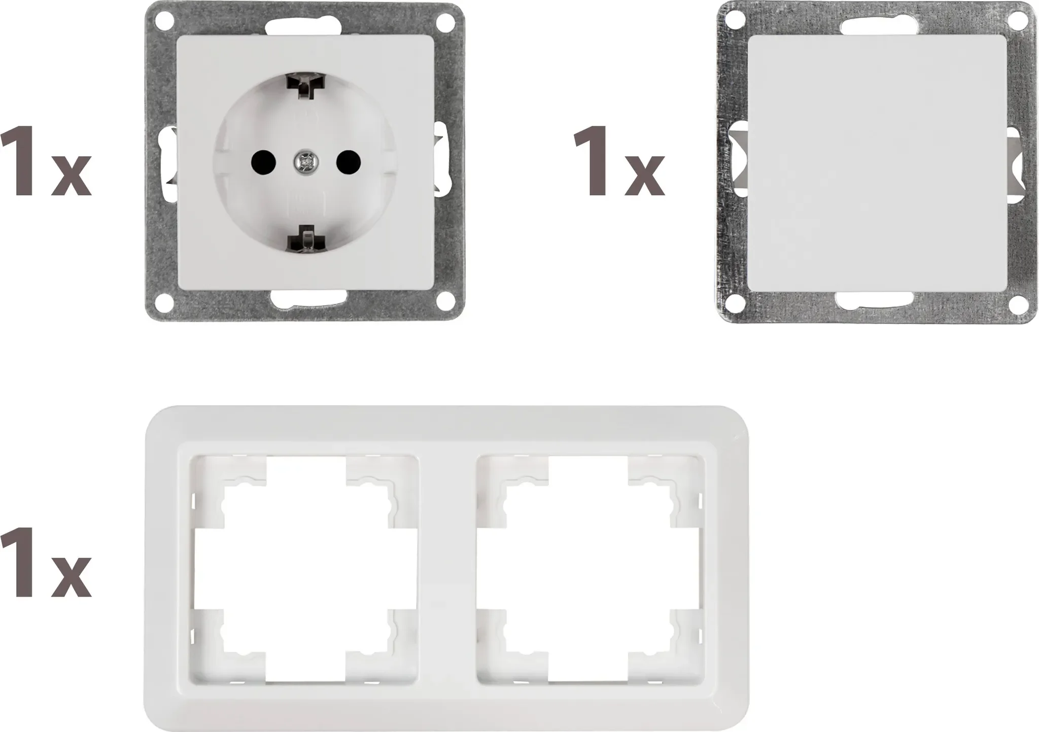 Modernes 3-teiliges Unterputz-Set mit Wechselschalter, Schutzkontakt-Steckdose & Doppelrahmen – zeitloses Design, einfache Montage