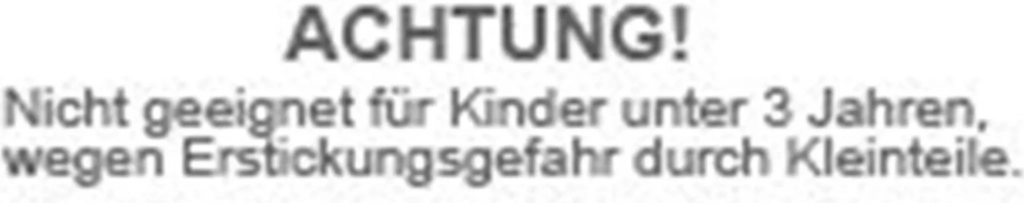 | Warnhinweis | Achtung: Nicht für Kinder unter 36 Monaten geeignet. Erstickungsgefahr durch Kleinteile. |