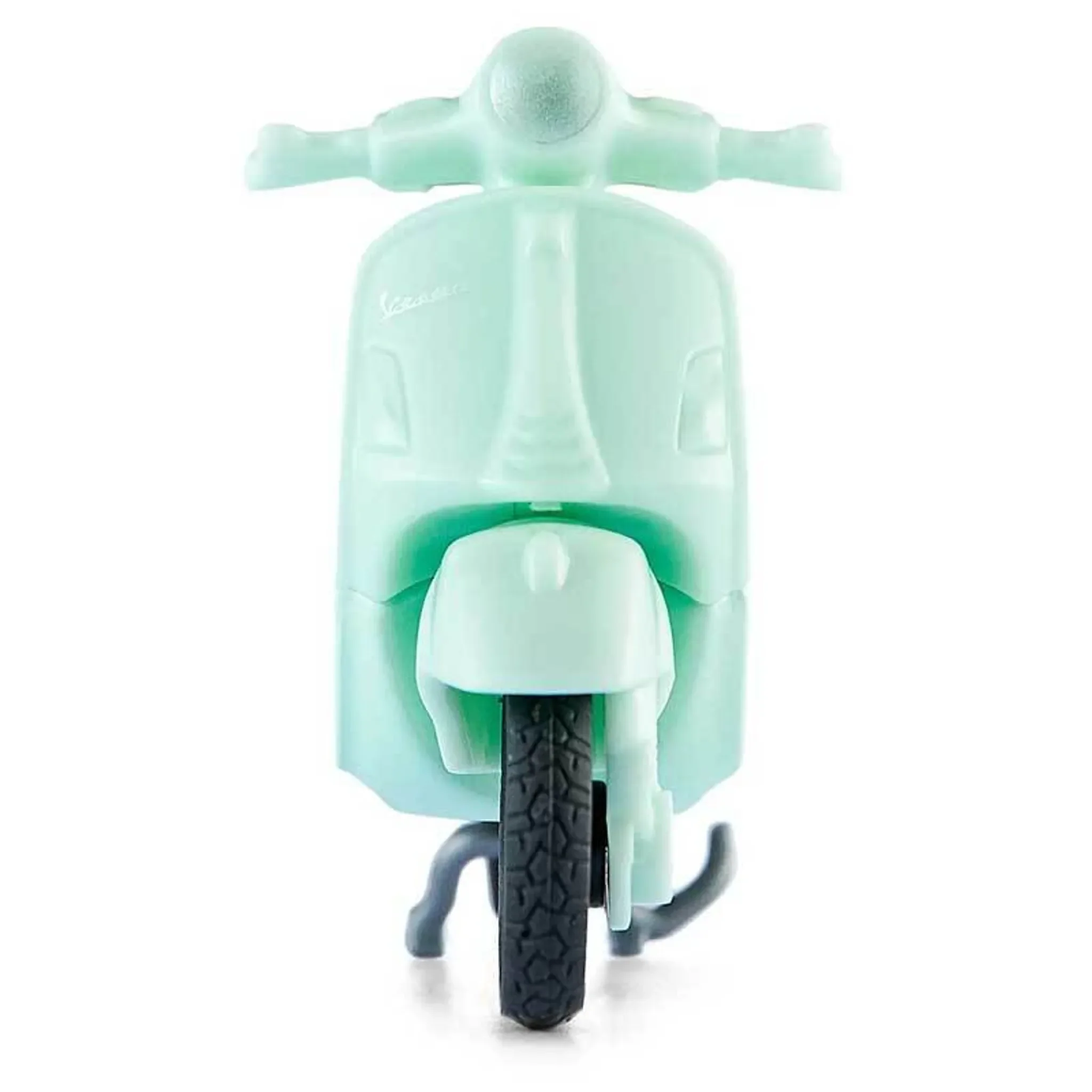 Die hochwertige Metallkarosserie und die beweglichen Bauteile wie Lenker und Ständer sorgen für realistischen Spielspaß und authentisches Design. Gummierte Reifen garantieren gute Rolleigenschaften und Stabilität. Mit ihrer mintfarbenen Lackierung und der braunen Sitzbank ist die Vespa ein echter Blickfang – egal ob als Spielzeug, Sammlerstück oder Dekoration.